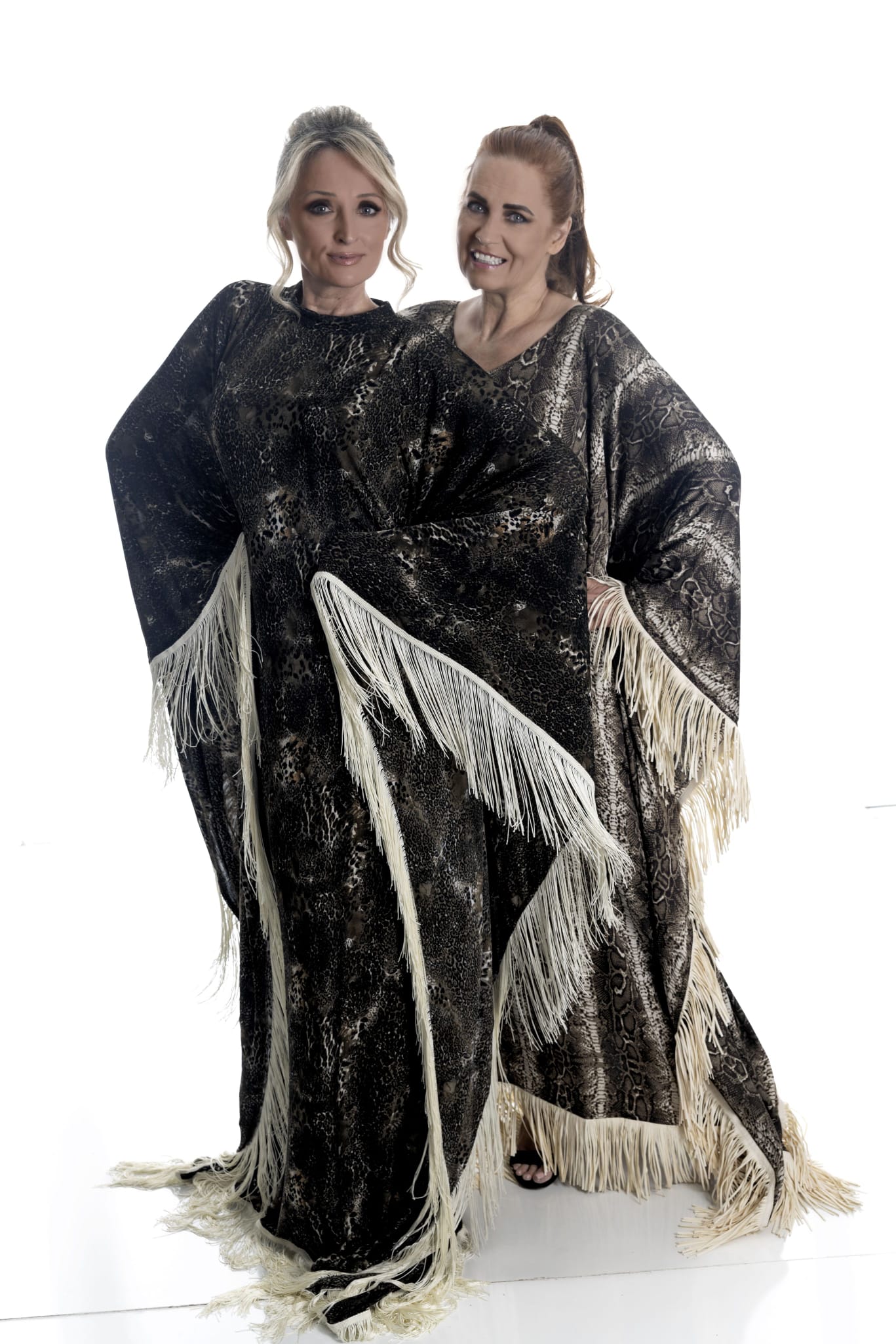 The Golden Dusk Fringe Dress radiates opulence with its snakeskin-inspired satin fabric and dramatic ivory fringe detailing along the sleeves and hem. Its loose, fluid drape provides both comfort and movement, making this a statement piece that balances elegance and ease.